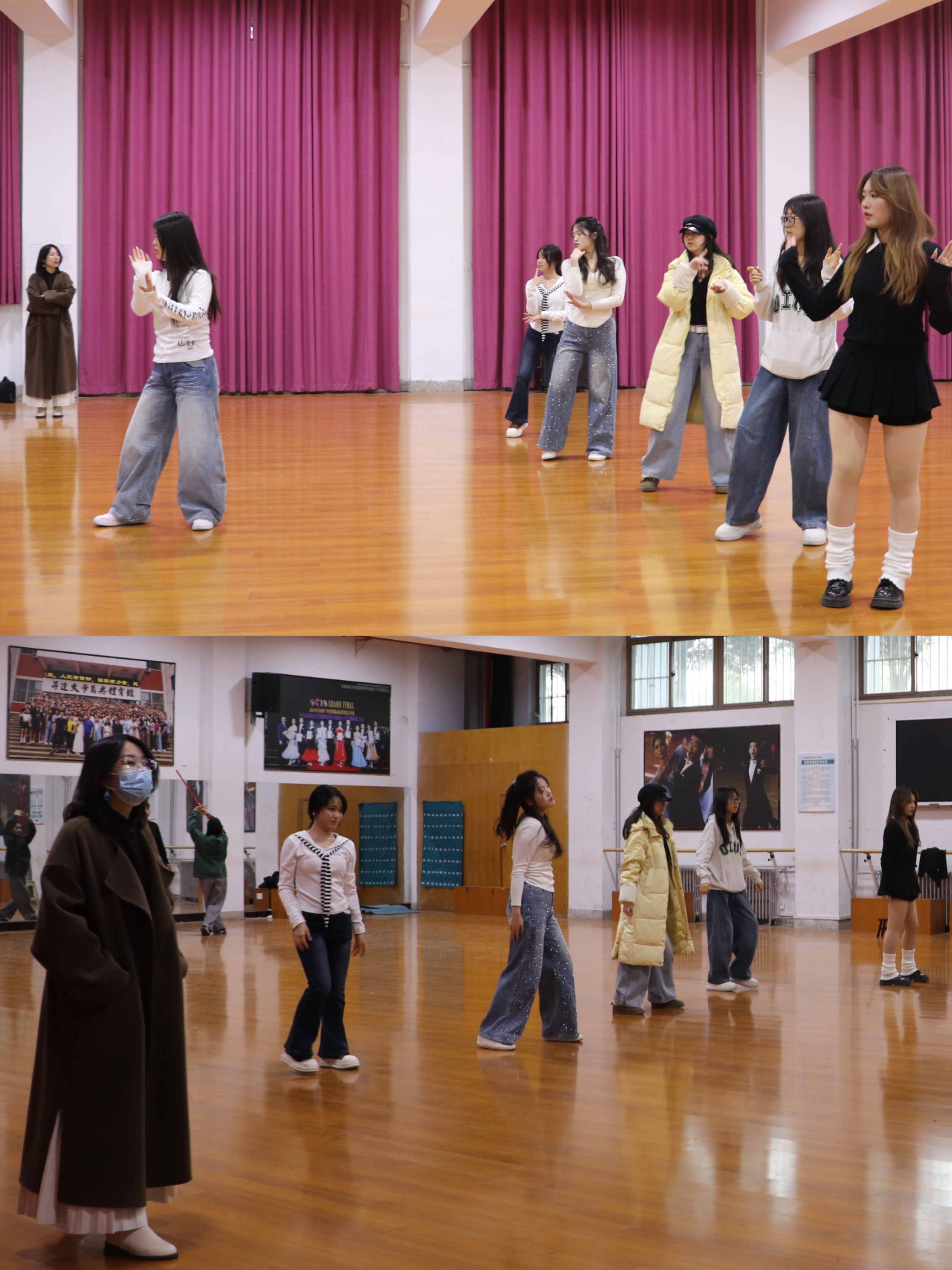 排练现场,社员们伴随轻快动感的旋律整齐起舞,动作舒展流畅,尽显青春朝气。丁玥老师全程专注观摩,精准捕捉舞蹈编排、队形变换及情感表达等核心细节,结合舞蹈甜美风格与嘉年华舞台氛围,针对性提出优化建议:叮嘱大家做好表情管理、保持饱满精神状态,鼓励社员在兼顾团队协调性的同时释放个人表现力,让舞蹈更具感染力。