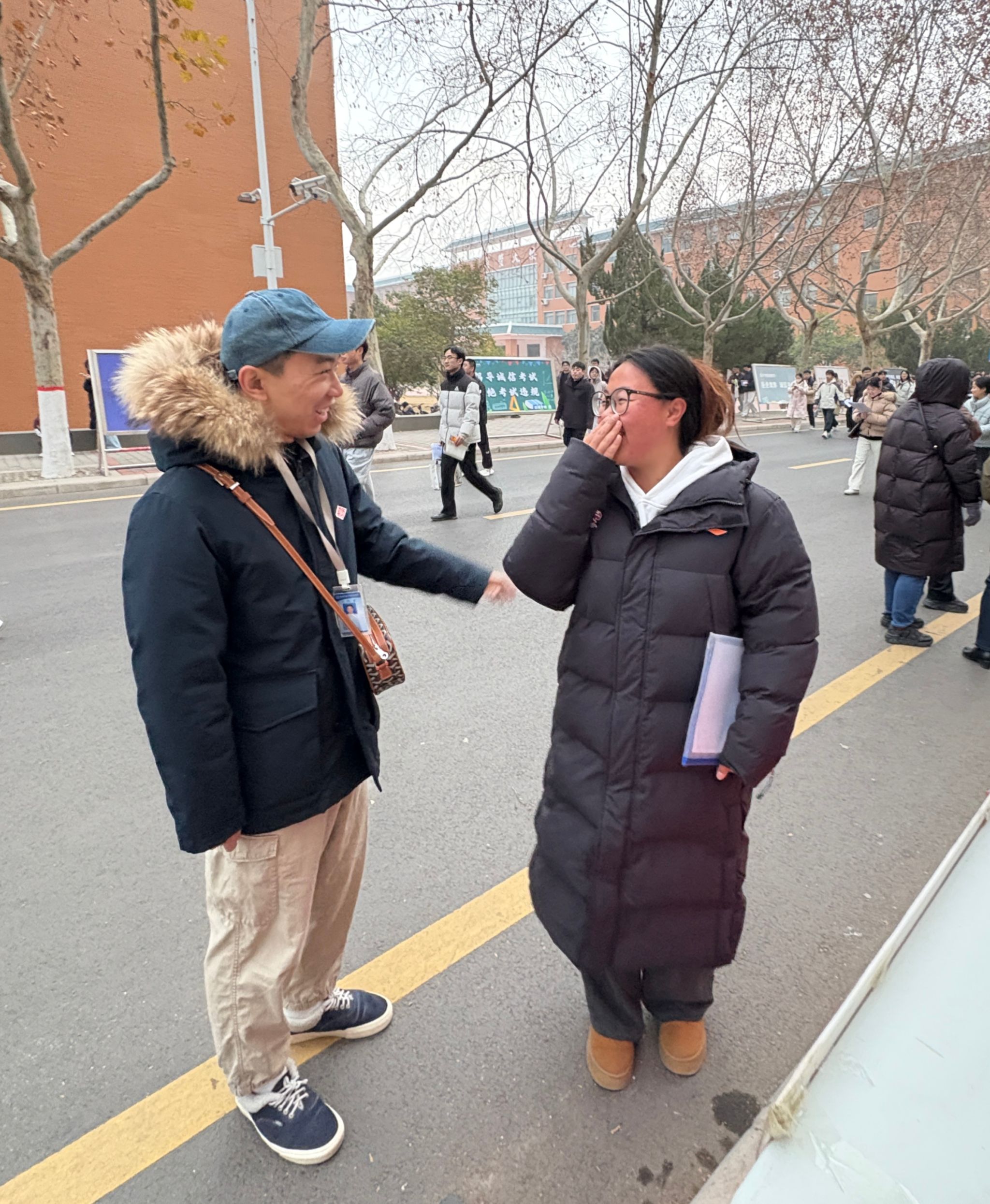 考试当天,外国语学院院长王莉莉教授、副院长贺光辉老师及各外国语学院毕业班辅导员们亲临考点现场开展送考工作。他们在考点入口处与考生亲切交流,为考生送上“放平心态、沉着应考”的暖心叮嘱,还为紧张的考生加油鼓劲,有效缓解了考生的考前焦虑情绪。同时,院领导实地巡查各执勤岗位,详细了解执勤工作开展情况,对坚守岗位的师生志愿者表示慰问,并要求执勤团队始终保持严谨负责的态度,确保各项服务保障工作落实到位。