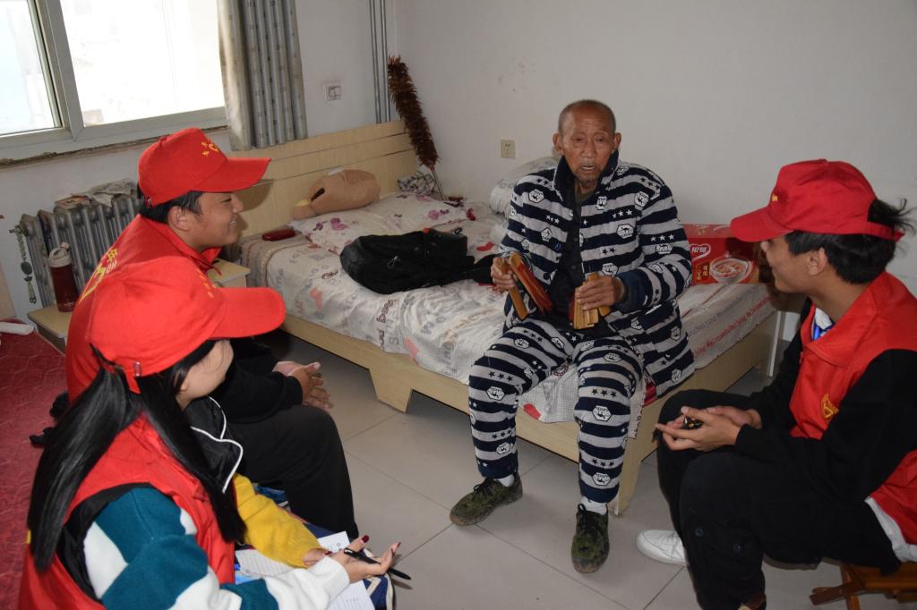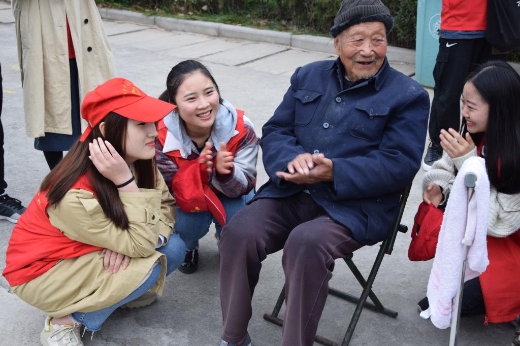到达敬老院之后,同学们为老人表演了节目,给老人带去了慰问品,陪老人聊天,打牌,帮老人打扫卫生,给老人铺床,和老人探讨书籍。一些老人也向大家展示了打快板,吹口琴,弹古筝等一些传统技艺。在活动结束后,老人站在院子里目送同学们的离开。