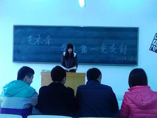 为响应学院深入开展“三爱”主题教育活动的号召,11月11日中午,艺术系学生第一党支部在209教室开展 “爱学习、爱劳动、爱祖国”主题教育活动。学生党支部书记赵会燕,辅导员李赵法、姚立、刘露和全体学生党员出席了会议。