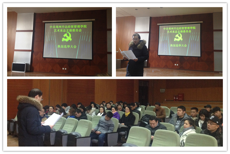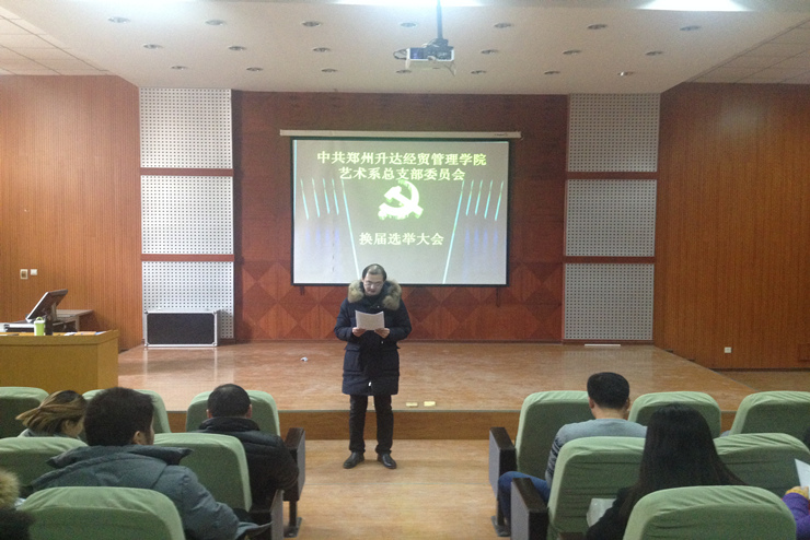 按照院党委关于基层党组织换届选举工作的有关部署,经院党委批准,艺术系党总支于2016年12月27日下午13:30,在艺术系105会议室召开了中共郑州升达经贸管理学院艺术系总支部委员会换届选举大会。大会由系党务信息员潘悦同志主持,艺术系全体教工党员及全体学生党员参加了大会,参会正式党员人数符合法定要求。
