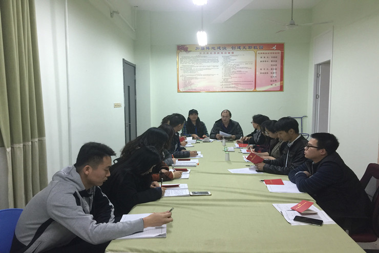 此次会议由艺术学院书记韦杨建主持,行政秘书曹华莹以及所有辅导员参加。会上,韦书记指出:各支部要充分认识党的十九大的重大意义,要积极进行“三会一课”,所有党员要认真学习新党章,积极开展学习活动,认真落实,迅速掀起所有师生学习党的十九大精神的热潮。