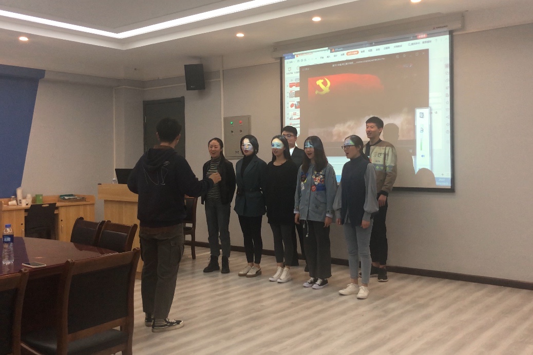 最后,同学们开展了击鼓传花的经典游戏。以《黄河大合唱》为鼓点,以音乐结束为鼓声停止,带动了整个党日活动的气氛。花落音表,全体的音表党员同学又为我们带来了小合唱《黄河大合唱》,结束了我们本次的党日活动。
