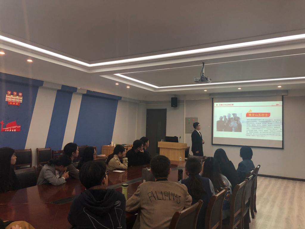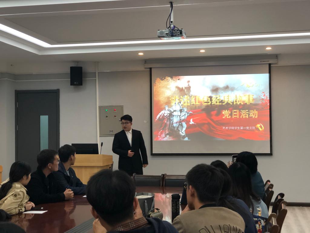 10月21日晚上19时30分,艺术学院学生第一党支部在艺术大楼411党员活动室开展了“聚美丽中国 红色故事入人心”主题党日活动。经过70年的发展,中国发生了翻天覆地的变化。中华民族迎来了从站起来、富起来到强起来的伟大飞跃。这一切都离不开那些曾经为了祖国奉献所有的英雄们。本次党日活动希望通过红色革命故事的回顾,激励党员同志们学习老一辈革命英雄的理想信念、为理想信念敢于牺牲的大无畏革命精神。艺术学院学生第一党支部在校全体师生党员参与本次学习,本次党日活动由杨萌玮老师主持,由学生第一党支部党员赵威同学主讲。