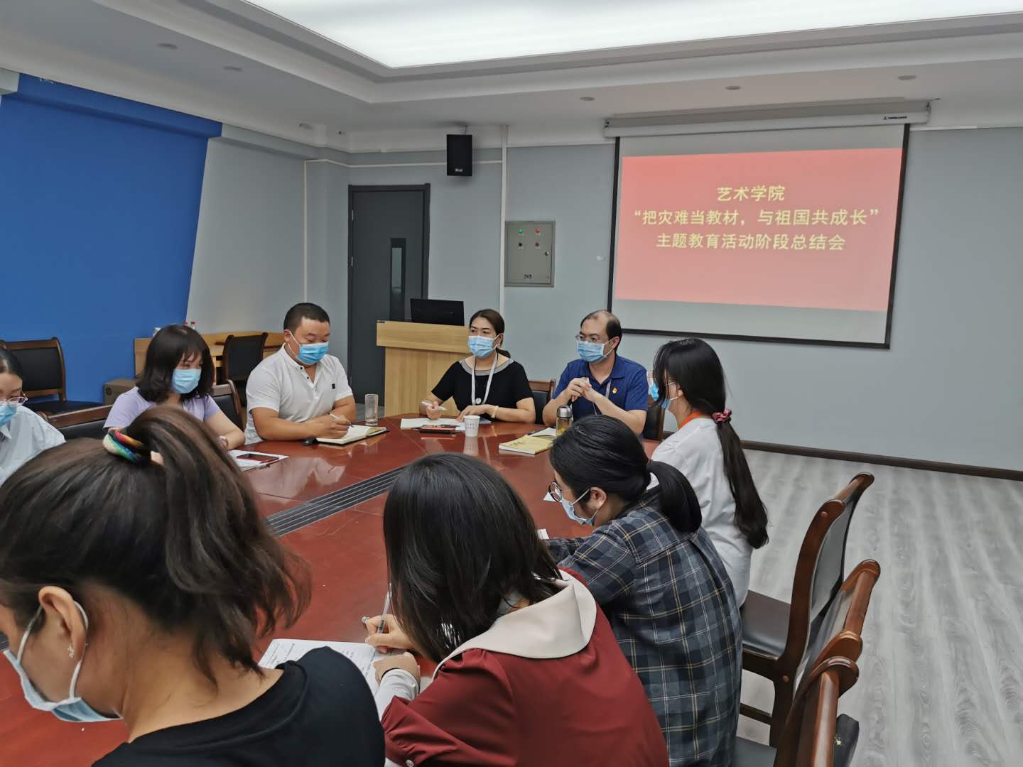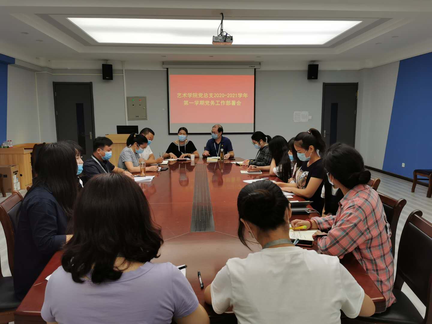 9月8日下午,艺术学院党总支在学院会议室召开2020-2021学年第一学期党务工作部署会。本次会议由韦杨建书记主持,行政秘书曹华莹及全体辅导员参加了此次会议。