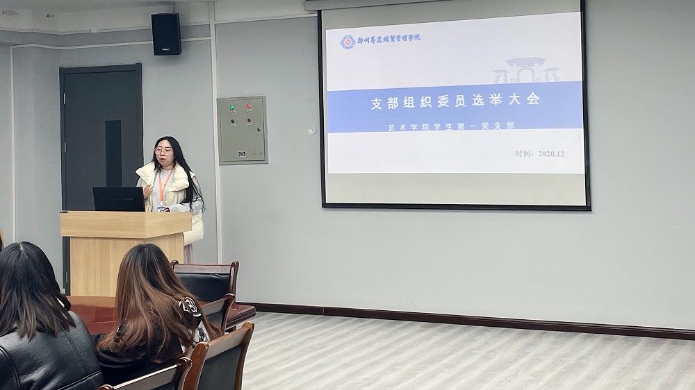 2020年12月16日中午12:10,艺术学院学生第一党支部在艺术楼411会议室召开支部组织委员选举大会,本次会议由支部书记杨萌玮主持,支部全体师生党员、预备党员参加。