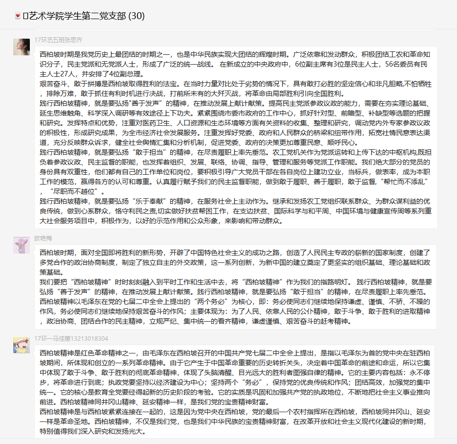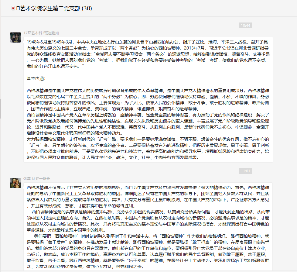 艺术学院学生第二党支部开展“学习西柏坡精神”线上主题党史学习教育