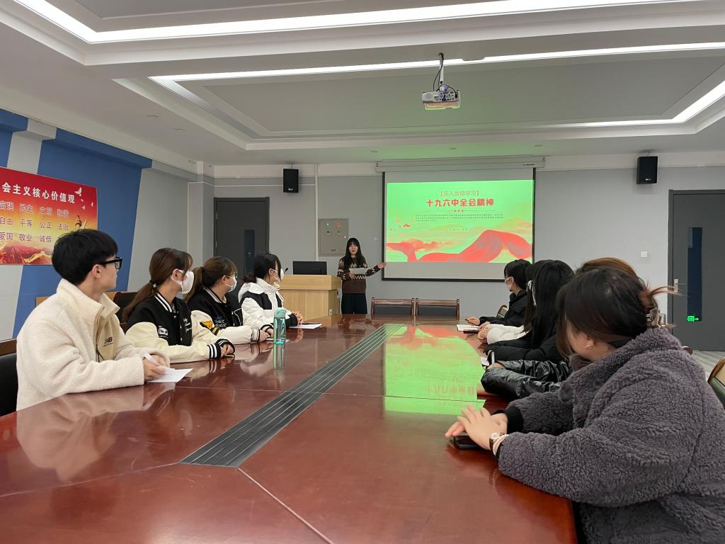12月13日中午13时,艺术学院视觉传达设计专业学生第一党支部在艺术楼411会议室召开党的十九届六中全会精神学习会,会议由党支部书记焦甜同志主持,视觉传达设计专业学生第一党支部全体党员参会。