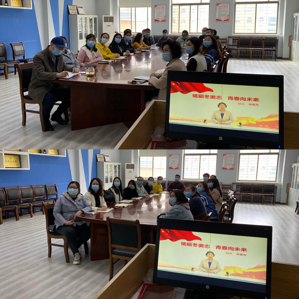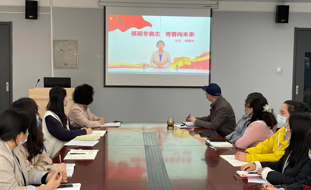 郭爱先校长以《砥砺冬奥志 青春向未来》为题,首先对全体师生在2021年勇敢抗击疫情,对学习和工作上不懈努力的精神表示肯定,并引用“虎”年的祥瑞之意对2022年给予祝福。