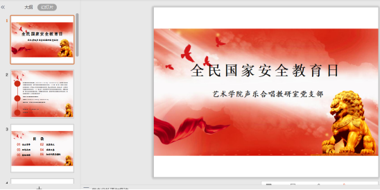本次线上学习,特别强调了社会组织和公民个人在维护国家安全方面的义务。通过学习,党支部全体党员同志意识到,当下中国面临着对外维护国家主权、安全、发展利益,对内维护政治安全和社会稳定的双重压力,各种可以预见和难以预见的风险因素明显增多,非传统领域安全日益凸显,因此,制定一部综合性、全局性、基础性的国家安全法,是应对国家安全新形势的需要。教研室党支部会通过多种形式的活动开展国家安全宣传教育,有利于将国家安全教育纳入师生的教育培训体系和日常生活体系,有效增强了师生的国家安全意识。