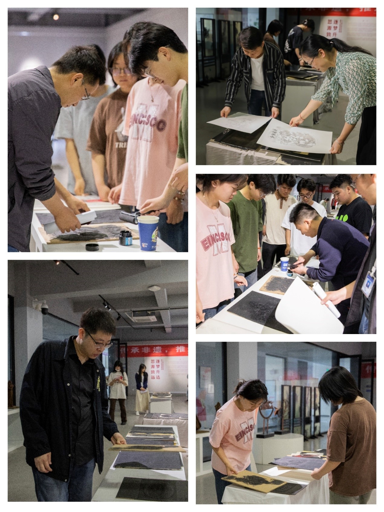 艺术学院党委书记张小雁同志指出;“木版画作为具有鲜明中国特色的非遗文化,在当今社会依然有其独特的艺术魅力,希望大家认真观摩和学习,探寻非遗艺术与现代艺术的融合,开展好课程思政,希望广大党员同志坚定“四个自信”,为建设中国特色社会主义贡献自己的力量。”