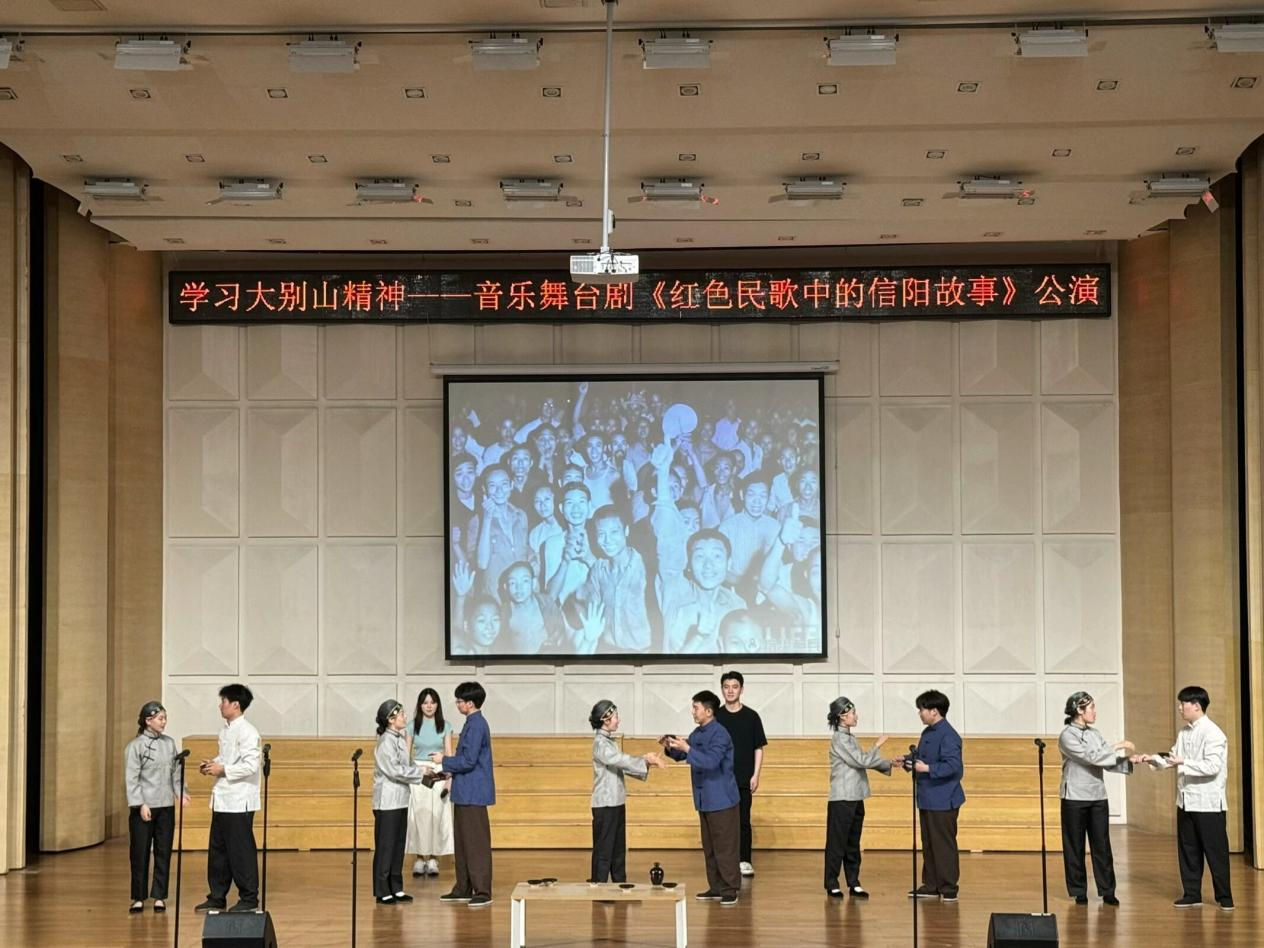 2024年6月6日晚7点,由郑州升达经贸管理学院党委主办的“学习大别山精神——民族音乐舞台剧《红色民歌中的信阳故事》公演”活动在学院音乐厅如期进行,艺术学院党委张小雁书记、艺术学院院长吴柏林教授、河南文化艺术研究院国家一级演员刘乐老师、青年作曲家白光英老师,与艺术学院全体入党积极分子、“理想主义·音乐戏剧坊”通识课学生通过剧目欣赏,重温了革命年代信阳工农群众在党的召唤和领导下参加革命,并最终取得胜利的革命故事,学习大别山精神,赓续红色血脉。
