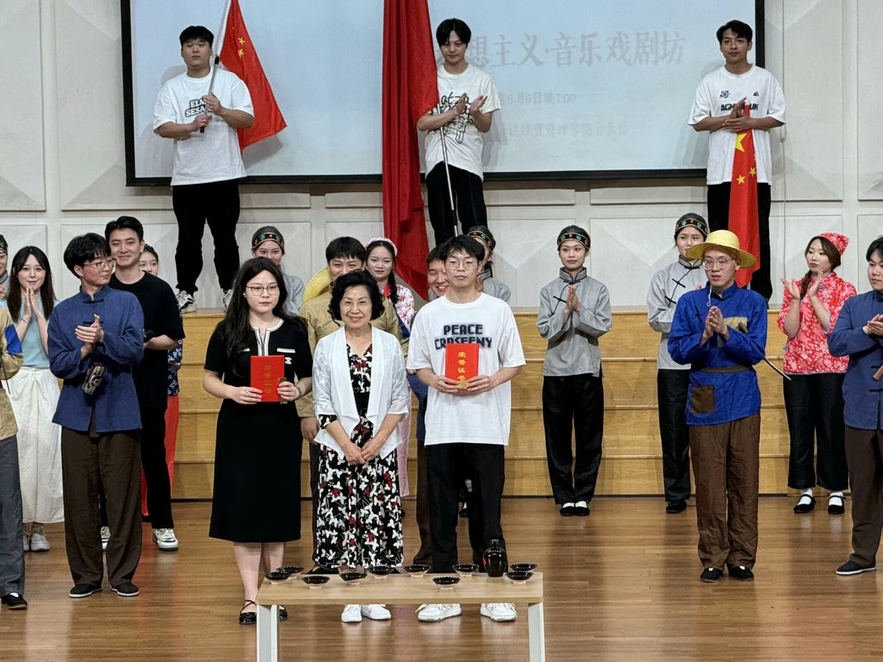 最后,艺术学院院长吴柏林教授为理想主义·音乐戏剧坊2024届优秀演职人员代表颁发了荣誉证书和纪念品。