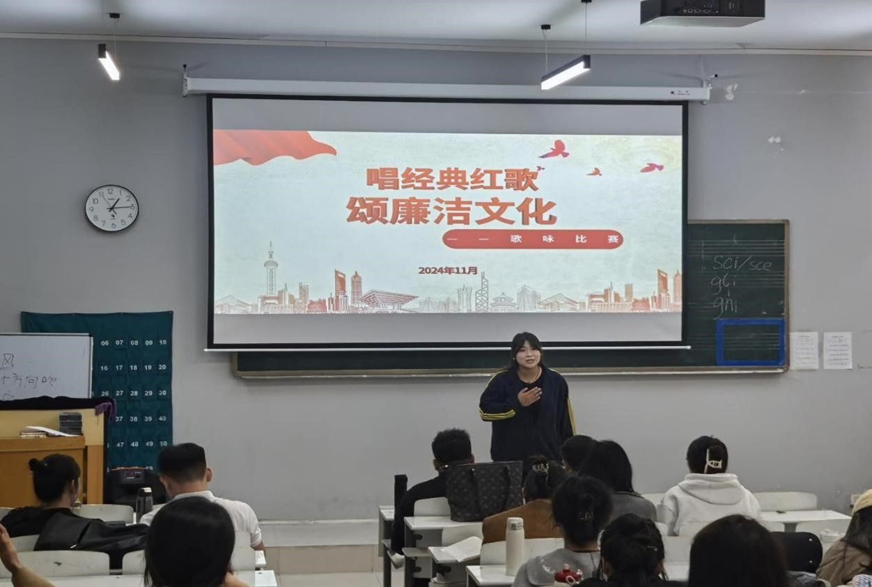 11月25日,为进一步发挥清廉文化在校园内的教育、示范、熏陶、导向作用,增强广大学生廉洁的意识,营造“崇尚廉洁”“以廉为荣”校园廉洁文化氛围,艺术学院在艺术楼104教室举办了“讲好廉洁故事,筑牢思想防线”故事分享与“唱经典红歌,颂廉洁文化”歌咏活动。