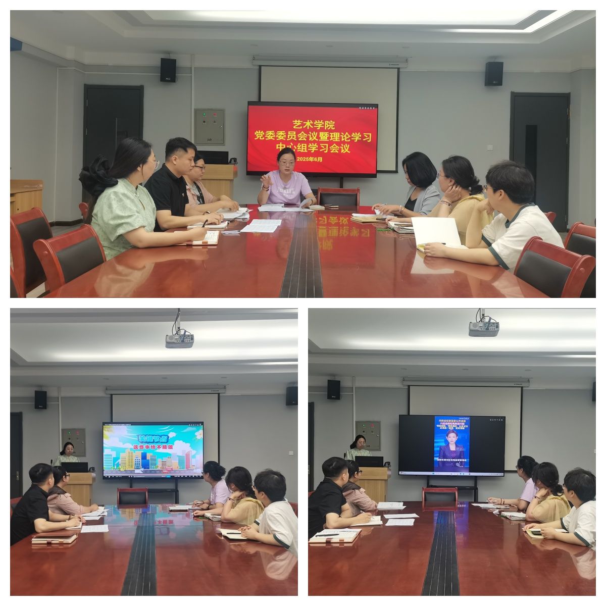 6月5日,艺术学院党委在艺术楼411会议室召开党委会暨理论学习中心组学习会,学院全体党委委员参加了本次会议。会议由学院党委书记张小雁主持。