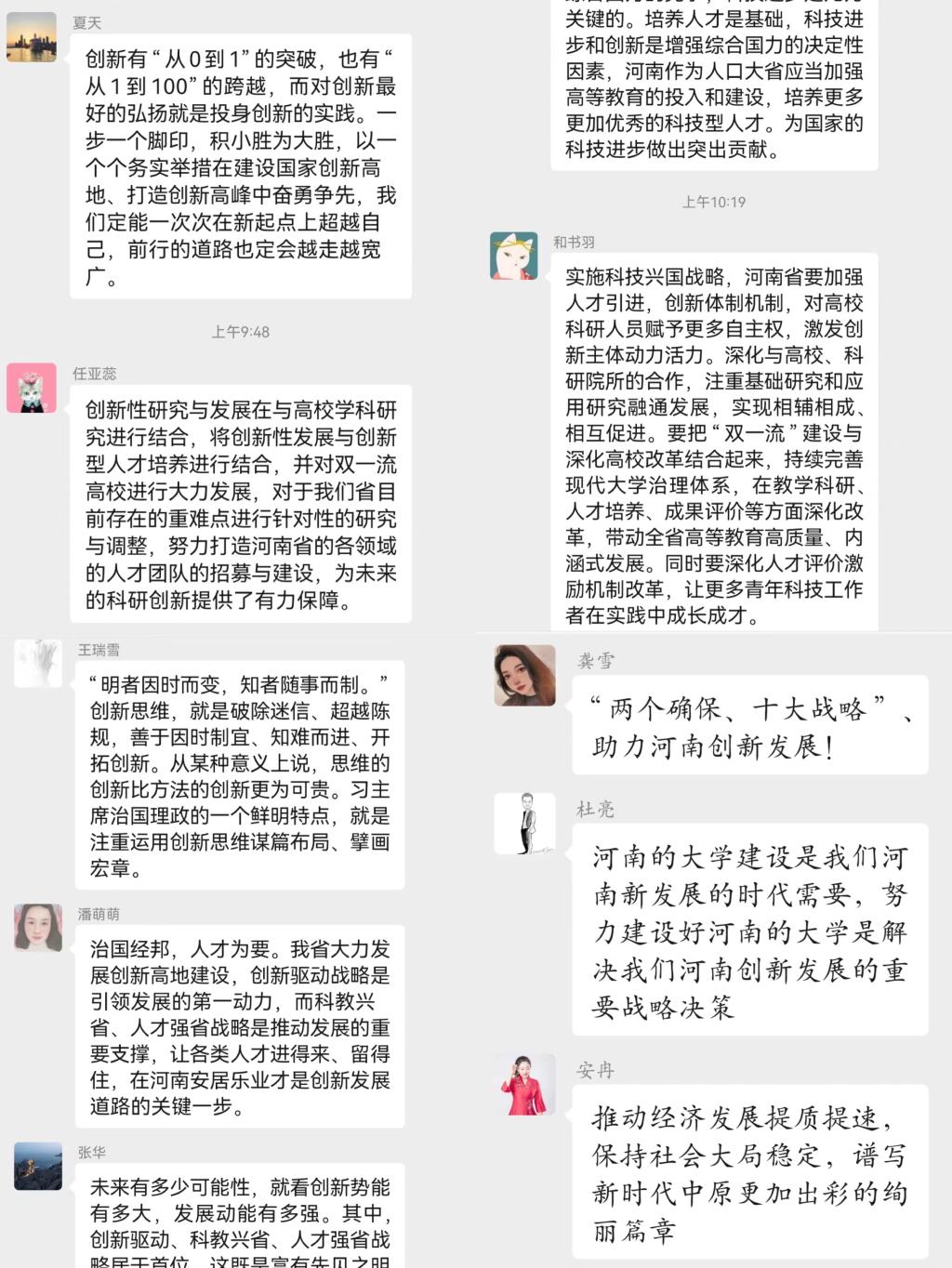 创新就是未来,我省将从多方面着力推进创新驱动、科教兴省、人才强省战略。无论是教师还是学生,通过第一讲的学习,都对科技创新人才、建设高能级创新平台等方面都有了更加深刻全面的认识,并展开积极的讨论。