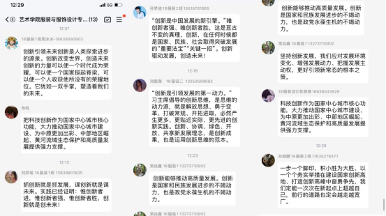 2019级服装本科2班孙梦迪同学说,创新是中国发展的新引擎。唯创新者强、唯创新者胜,这是亘古不变的真理。创新,在任何时候都是国家、民族、社会取得突破发展的“重要法宝”“关键一招”。创新驱动发展、创造未来!