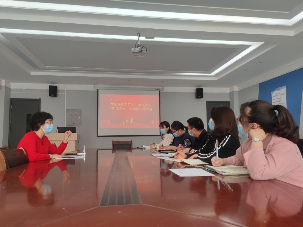 2022年5月14日下午三时,艺术学院党委在艺术楼411召开党史学习教育“四渡赤水”专题学习研讨会,党委书记张小雁主持本次研讨会,全体党委委员参加本次学习。