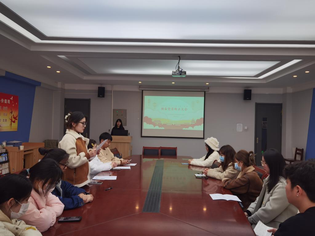 2023年12月12日中午13点,艺术学院视觉传达设计专业学生第一党支部召开预备党员转正大会,审议预备党员刘安然、苏世昊、贺晨雪、闫梦轲四位同志的转正问题。大会由支部书记焦甜同志主持,支部全体党员参加了此次会议。