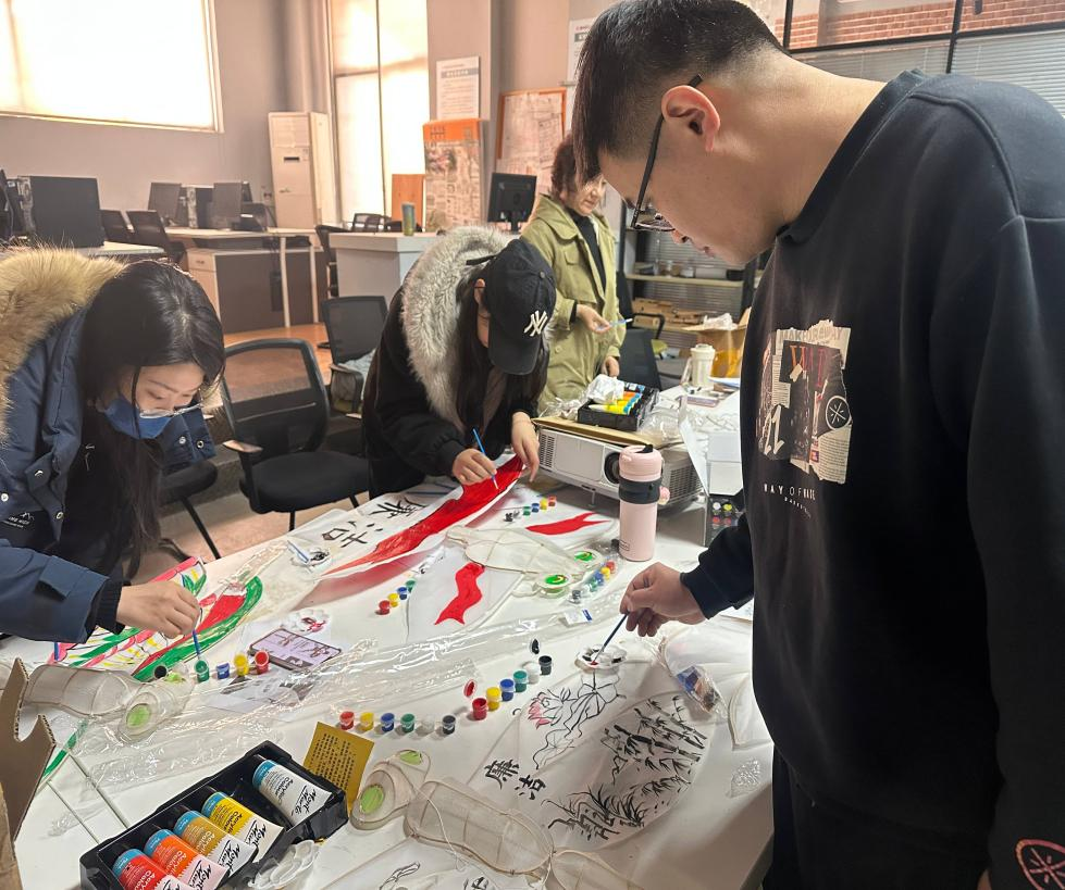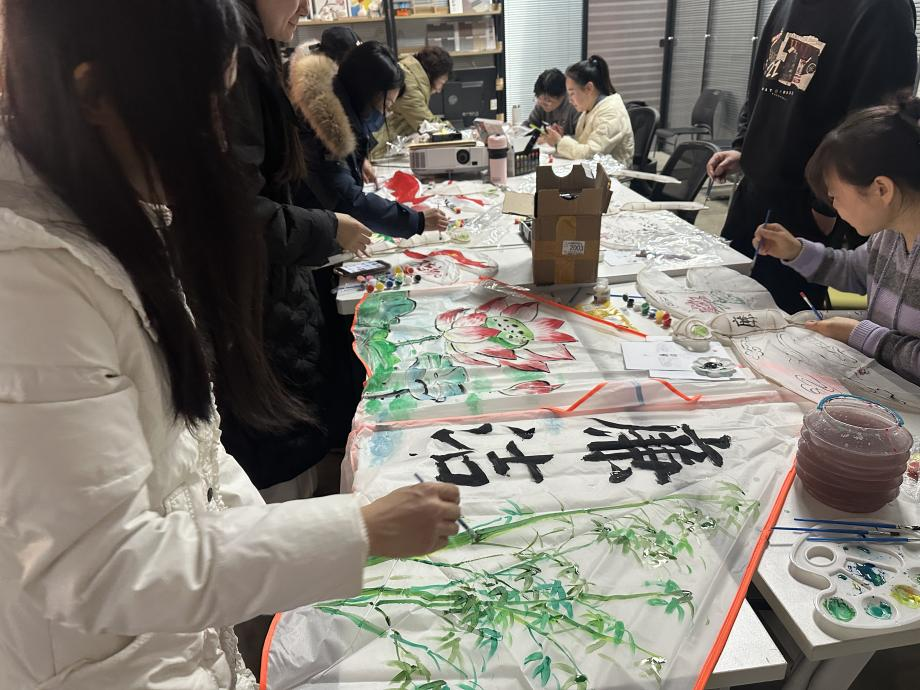 随后,贾慧华老师带领党员教师们体验传统非遗工艺——纸鸢。教师们结合廉洁文化主题,手持工具一步步完成非遗纸鸢扎制与彩绘。在制作过程中,大家相互交流心得,将对廉洁的理解与感悟融入纸鸢创作之中。