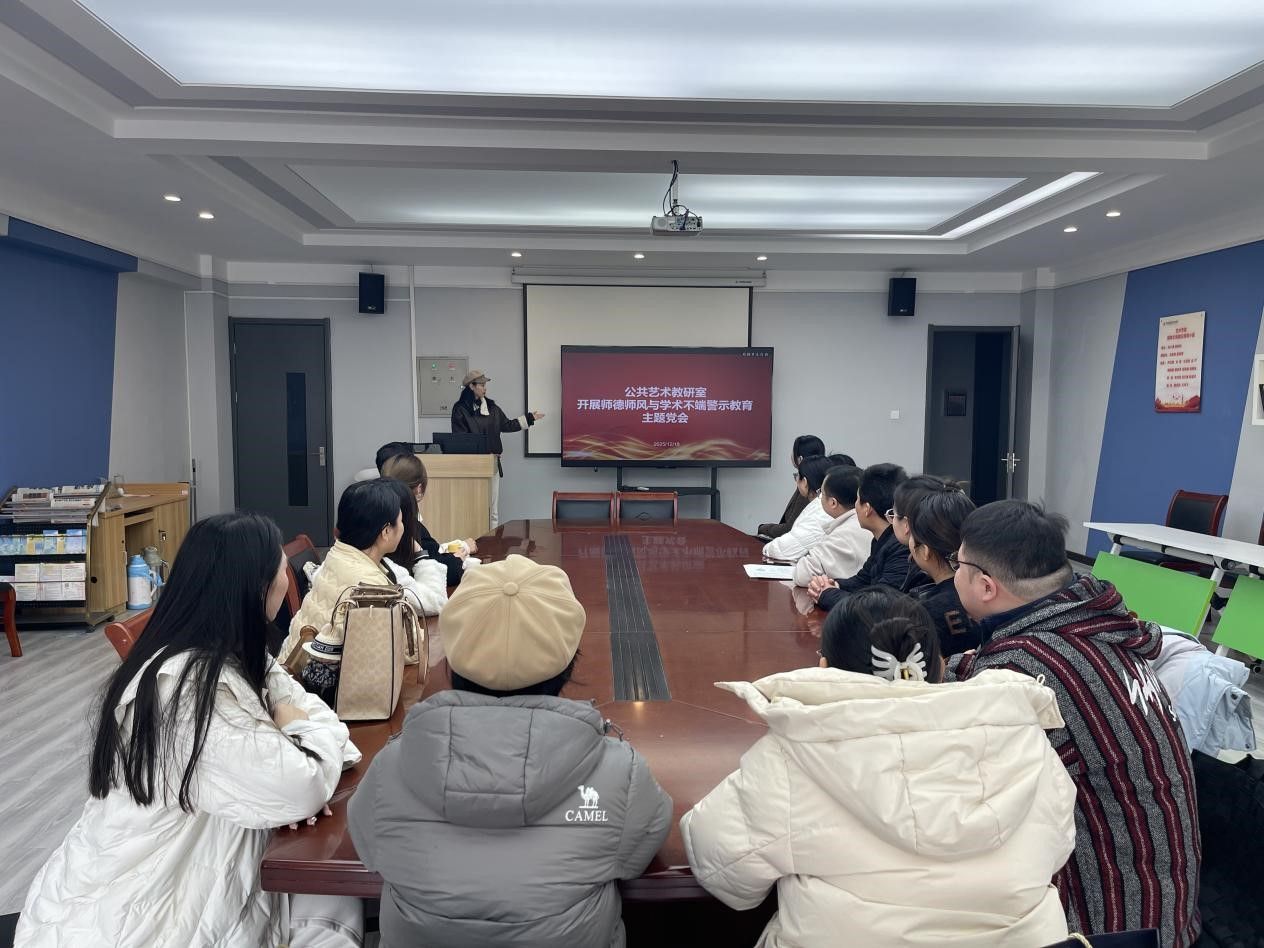 12月18日,公共艺术教研室党支部全体教师在艺术411会议室开展“师德师风与学术不端警示教育”主题党日活动。会议由党支部书记吴则斌同志主持,全体党员共同参与。