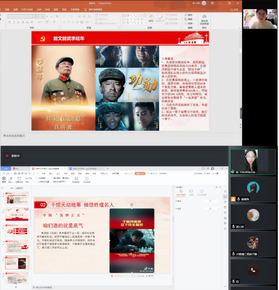 会议第四项,延续支部暑期系列微党课分享活动,由支部党员学生武心如、刘佳带来他们观看电视剧《功勋》后的有感分享。武心如同学通过分享《能文能武李延年》的故事,启示我们政治干部要具有的专业素养。随后她结合心理委员的工作,向我们科普了“PTSD创伤性应激障碍”的概念,并向大家推荐了几部关于“PTSD创伤性应激障碍”的小说和电影。刘佳同学通过分享《于敏:肩负重任,隐姓埋名》,让我们除了了解于敏的生平外,更是深刻的认识到一个科研人员为祖国的繁荣强盛做出的牺牲。刘佳同学还根据于敏的专注总结了我们在日常生活中提高学习工作效率的五点建议,让与会的同志们都收获颇丰。