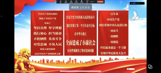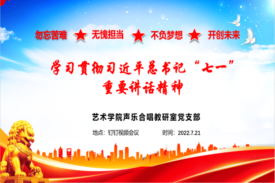 2022年7月21日上午10点,艺术学院声乐合唱教研室党支部在钉钉会议召开了线上7月份主题生活会。会议主要围绕学习习近平总书记“七一”重要讲话精神展开。会议由声乐合唱教研室党支部书记、教研室主任蔺丽君主持,支部全体教师党员参加了此次会议。