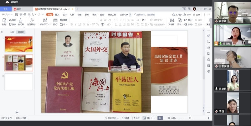 2022年9月5日上午,艺术学院公共艺术教研室和服装与服饰设计教研室联合党支部线上开展了《习近平谈治国理政》第四卷专题学习研讨。公共艺术和服装设计党支部书记吴则斌老师主持会议,支部成员参与了学习研讨。