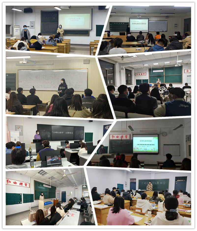 会后,各位辅导员老师纷纷组织所带班级开展主题班会,将文明礼貌月“文明礼貌从礼让做起”传递给所有同学,呼吁同学们“文明礼貌,从我做起”。各班根据专业特色开展相关的校园活动,充分发挥学生的组织能力,在锻炼专业技能的同时也训练其他的能力,实现自身综合素质的提高,不断的丰富校园文化生活。