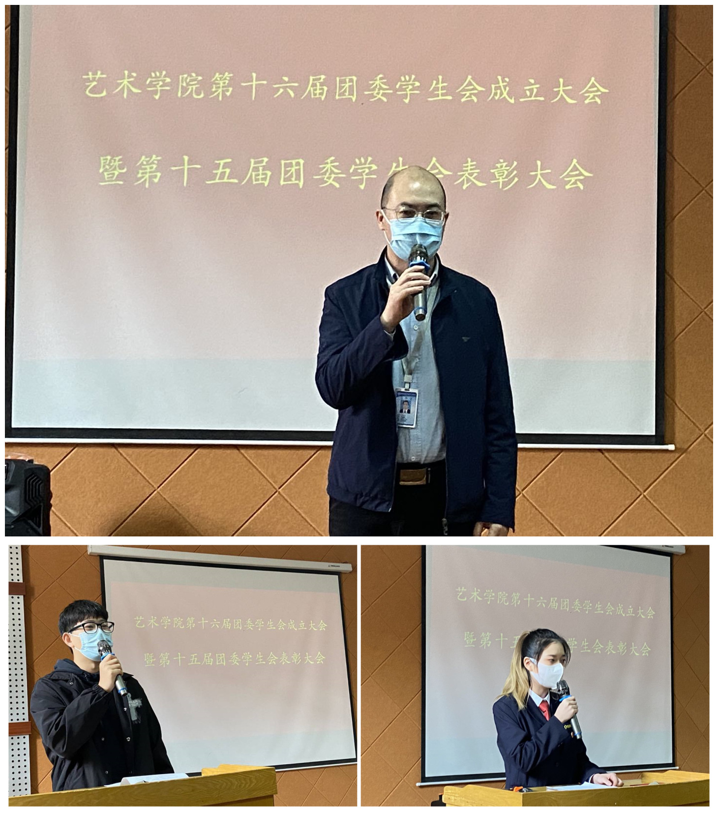 11月15日中午,艺术学院第十六届团委学生会成立大会暨第十五届团委学生会表彰大会在艺术楼105教室召开。艺术学院党委书记韦杨建、艺术学院团委书记尹红艳老师、团委副书记杨萌玮老师、第十六届团学会全体学生干部和第十五届团学会学生干部代表参加会议。