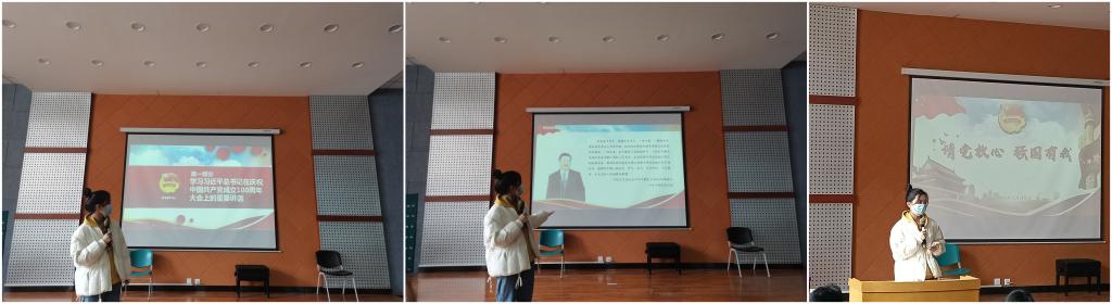 会上首先学习了习近平总书记在庆祝中国共产党建党一百周年大会上的讲话。未来属于青年,新时代的中国青年要以实现中华民族伟大复兴为己任,增强做中国人的志气、骨气、底气,不负时代,不负韶华,不负党和人民的殷切期望,这是习近平总书记对年轻人的嘱托和盼望。