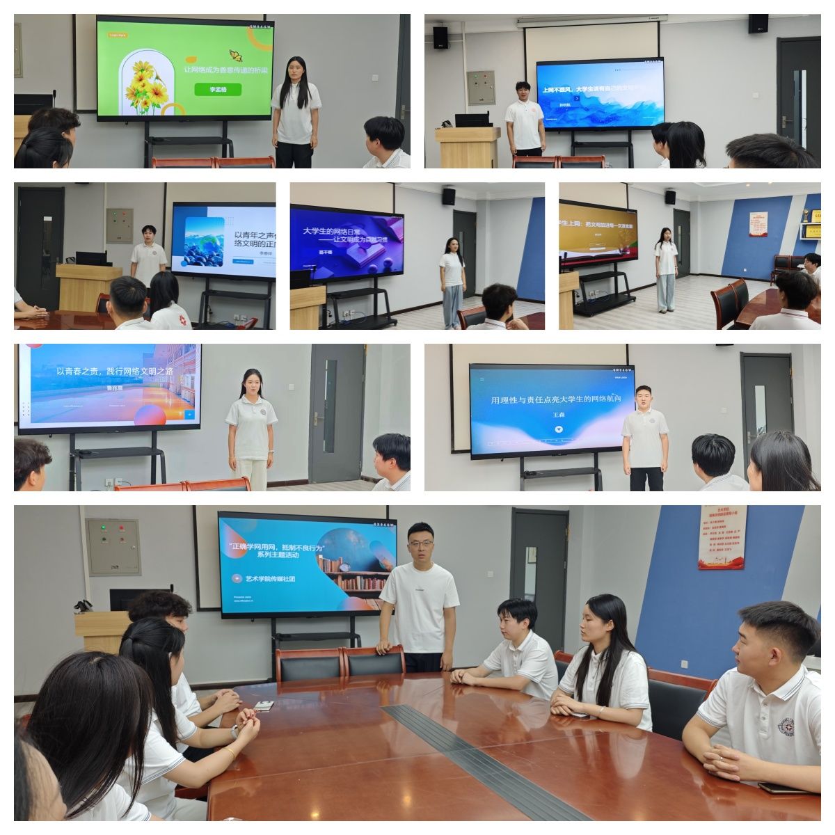 郭文科同学的《大学生上网——把文明放在每一次发言里》强调了将文明意识融入每一条评论、每一次互动,倡导以尊重、理性的语言营造清朗网络空间。孙钊航同学的《上网不跟风、大学生该有自己的文明判断》呼吁大学生摆脱盲目从众,凭借独立思考建立文明判断标准,拒绝传播不实信息与不良言论。王森同学的《用理性与责任点亮大学生的网络航向》表达了大学生在信息洪流中应坚守底线,以正向行动规划网络行为方向。李孟格同学的《让网络成为善意传递的桥梁》倡导大学生应充分发挥网络的连接作用,通过分享温暖故事、提供帮助、传递正能量。李意祥同学的《以青年之声传递网络文明的正向力量》突出了大学生作为青年群体的先锋作用。范千格同学的《大学生网络日常 —— 让文明成为自然习惯》强调将文明上网从 “刻意要求” 转化为自然而然的习惯,应将规范用词、保护隐私、尊重他人等,融入线上生活点滴。鲁兆雪同学的《以青春之责,践行网络文明之路》讲述了自身是如何用点滴行动将 “青春之责” 转化为践行网络文明的生动实践。