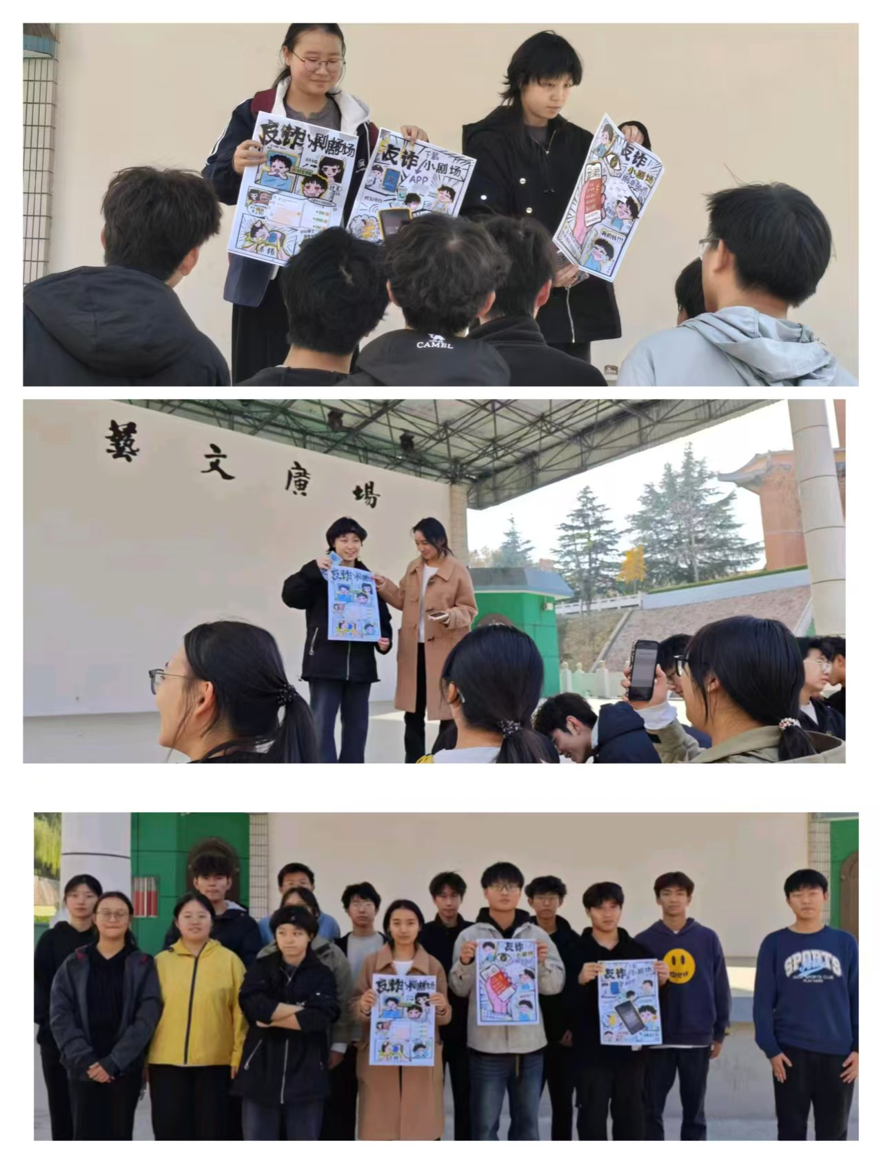 活动现场,团支书徐凤手里捏着手机,指尖在聊天记录界面滑动着,“上周我在设计兼职群里看到帮画插画日结300的消息,对方让先交200押金激活任务,还发了工作室营业执照照片。我当时特别感兴趣,差点转钱时,我突然想起辅导员老师说的先交钱都是诈骗,赶紧在企查查上查了照片上的执照编号,你们知道吗,居然是假的!”团支书声音带着后怕,台下团员们纷纷凑近屏幕,看着聊天记录里“不交押金就拉黑”的威胁话术,有同学小声感慨:“原来刷单诈骗都包装成兼职了!”随后学习委员又跟大家分享了论坛下载软件找激活码的惊险陷阱,点进一个免费激活链接后,手机突然弹出病毒风险提示,后台还在偷偷下载不明文件。台下同学们响起一片吸气声,原本轻松的氛围瞬间凝重——真实案例像警钟,敲在每个人心上。案例分享结束,团支书邀请各海报制作团队代表,结合团队设计的权威反诈海报,带班级团员来拆穿校园里的“套路”!围绕“校园高频诈骗场景”拆解套路、提炼防范要点。解读环节在热烈的讨论中结束,最后全员写下“设计有创意,反诈不大意”等专属标语,明确反诈态度。活动结束时,团员们集体合影,阳光照在每个人眼里——那些真实的案例、拆解的套路、亲手写下的承诺,正化作心里的“反诈盾牌”,让这次反诈主题团课,变得格外有分量。
