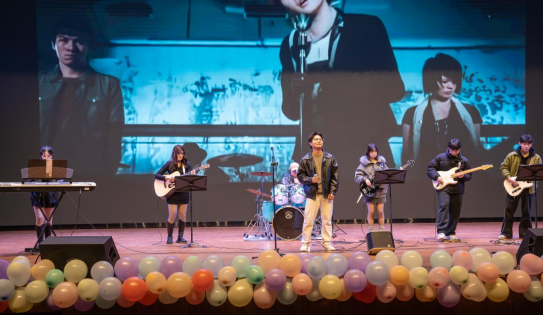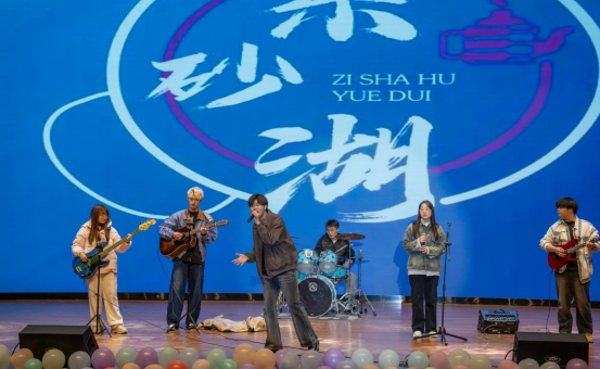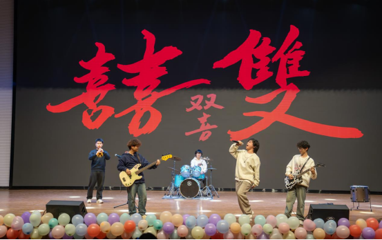 摇滚社携《夜空中最亮的星》来到舞台前,歌曲结尾同学们互动倍显活力。
