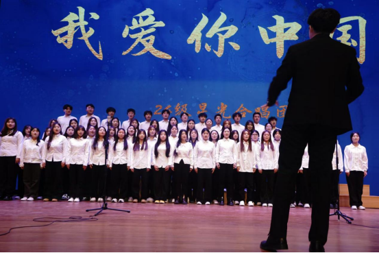 最后,24级星光合唱团唱响《我爱你中国》,反复咏唱中,满是对祖国的热爱与眷恋,深情感染全场,彰显青年爱国情怀,化作对祖国的深情礼赞。
