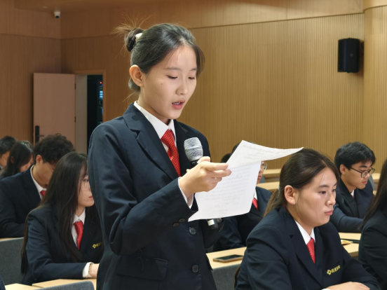 在优秀学员代表发言环节,校学生会主席团成员王家聪、校团委组织部副部长邓寅申、文法学院学生会执行主席孟晓宇三位成员,以校学生会和校团委组织部为例,从工作开展、职能构架以及人员培训三个方面向大家展示了一个部门高效运作的精髓。