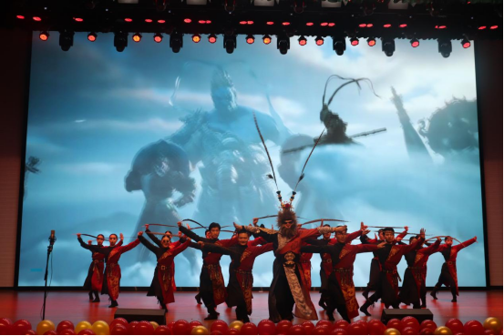 国标舞与经典元素融合的表演令人眼前一亮。《国标:黑神话悟空》把国标舞的优雅与孙悟空的灵动巧妙结合,舞者们的精彩演绎仿佛让神话中的孙悟空跃然舞台之上,赢得了现场观众的热烈喝彩。