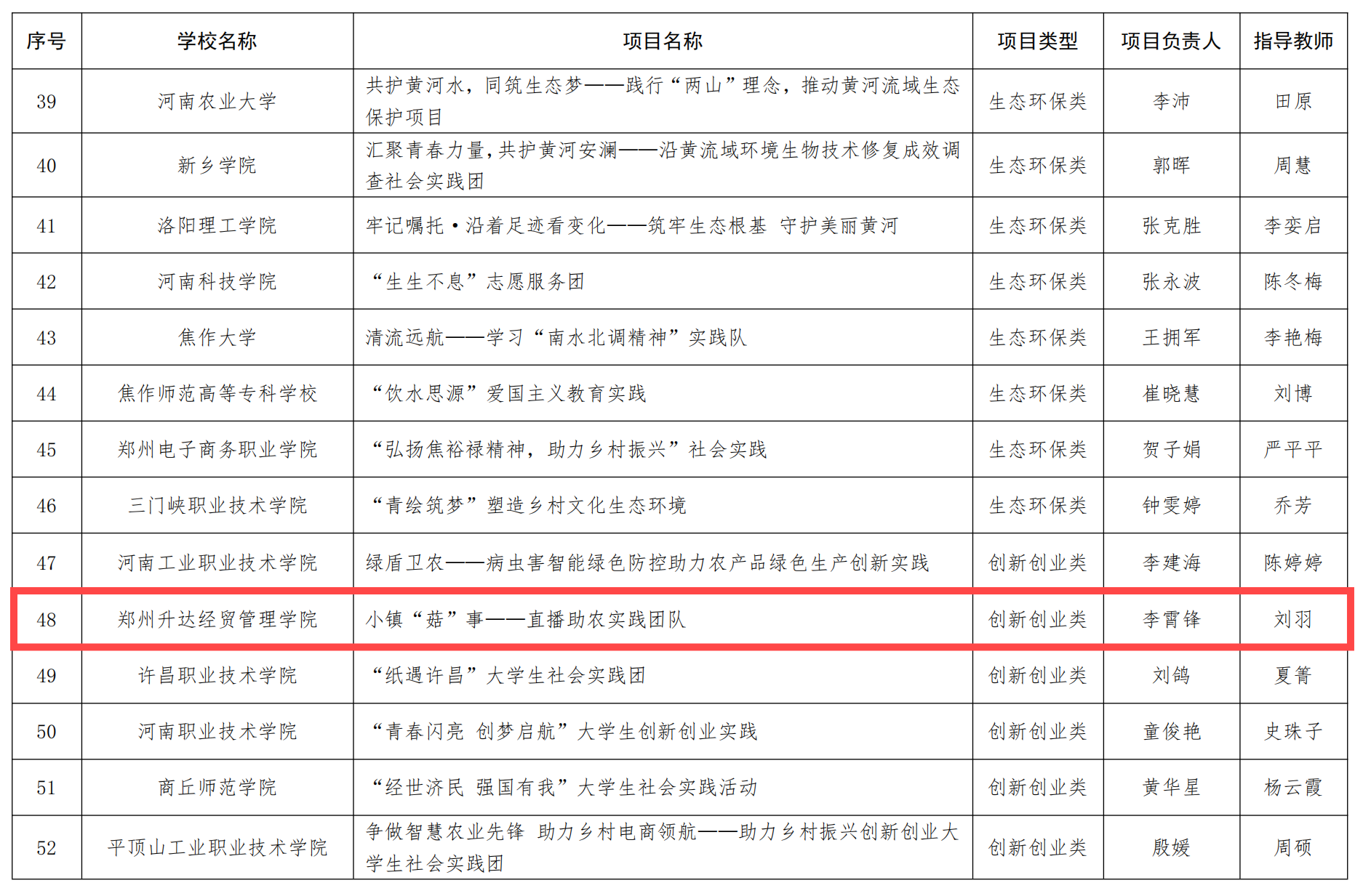 近日,省教育厅对河南省第八届普通高等学校“出彩中原”大学生社会实践活动项目立项名单给予公示。我校申报的《小镇“菇”事——直播助农实践团队》项目(项目负责人:李霄锋;指导教师:刘羽;成员:苏慧珍、谢有萍、肖依娴、葛俊、姜淇、刘子函、焦贤哲、郭潇文、李婷婷、金丽、刘程)获得立项。