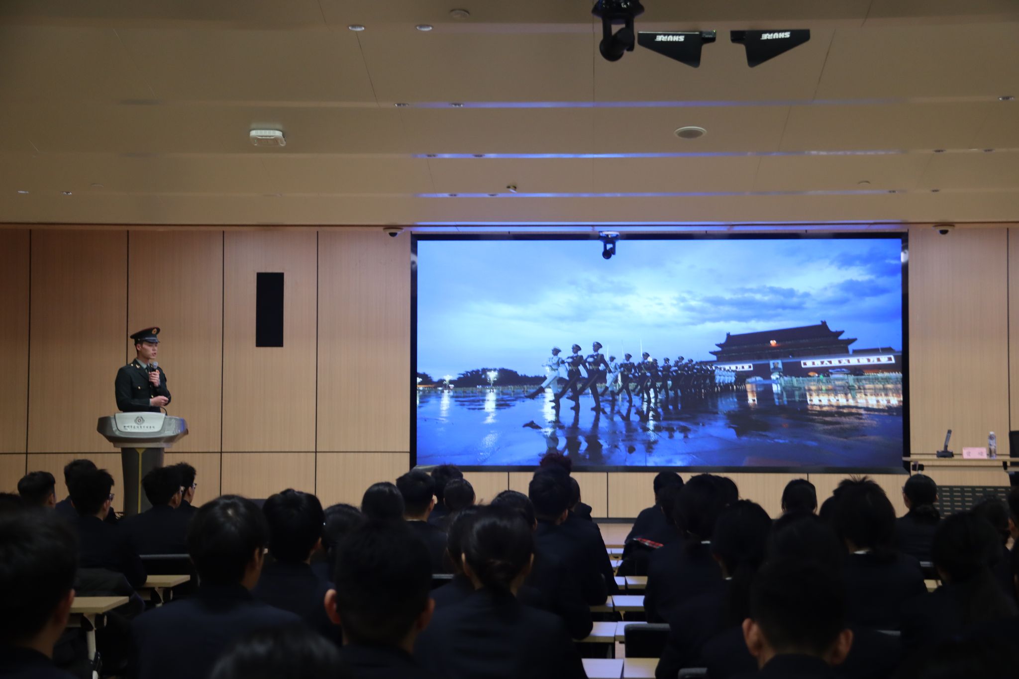 曾嵘同志曾服役于北京天安门国旗护卫队,担任海军护旗手,参与过2900余场次的天安门广场升降国旗任务,并多次执行重大国家典礼任务。讲座中,他结合自身经历,讲述了国旗护卫队的职责与使命,强调了国旗的尊严与神圣。他提到,每一次升旗仪式都是对祖国的庄严承诺,护旗手们用实际行动捍卫国旗的尊严,凝聚了亿万中华儿女的爱国之心。