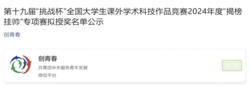 我校在“挑战杯”全国大学生课外学术科技作品竞赛“揭榜挂帅”专项赛首获国赛“三等奖”