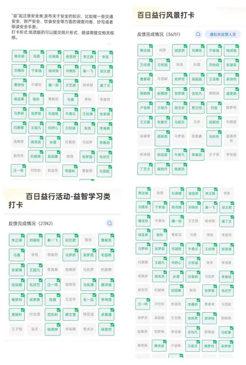 通过百日“益”行打卡活动丰富我校学习生活,增强学生的归属感和凝聚力,营造积极向上的校园文化氛围,对积极完成打卡任务的同学进行相应的奖励。