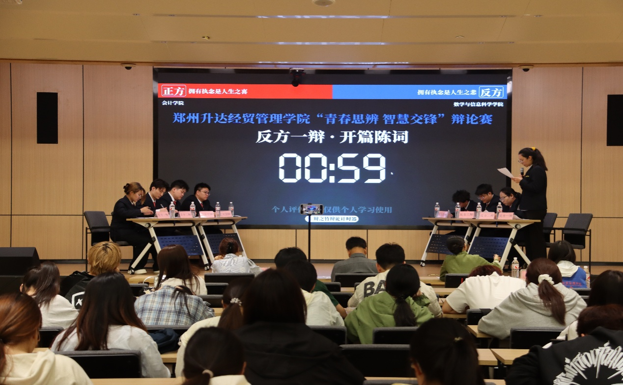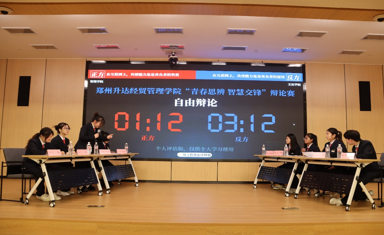 4月10日18时10分,由共青团郑州升达经贸管理学院委员会主办,校学生会学习部与校演讲与辩论协会承办的“青春思辨,智慧交锋”辩论赛决赛在新图书馆第一报告厅激烈上演。马克思主义学院院长程明欣教授、校团委张思昱老师、马克思主义学院教师陈静怡担任评委,共同见证了这场思维与口才的巅峰对决。