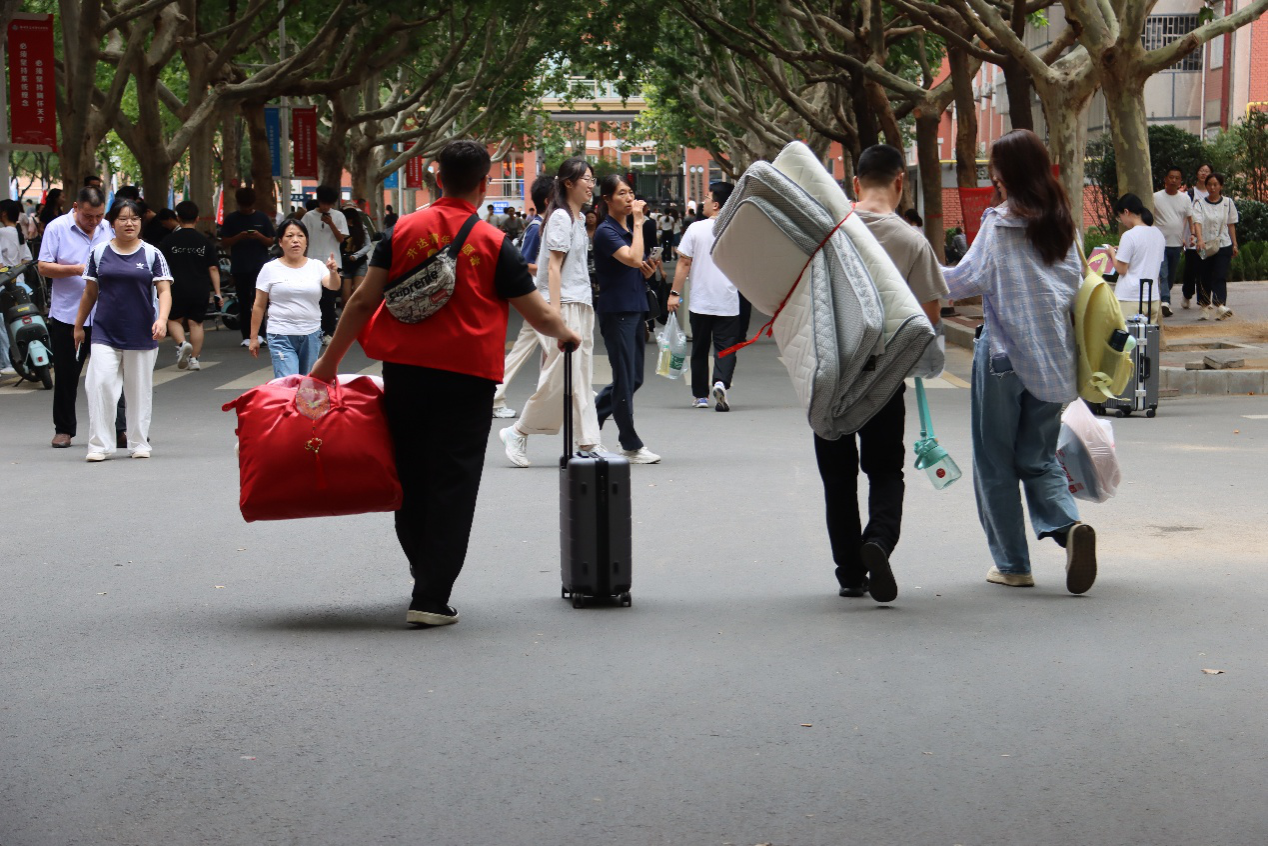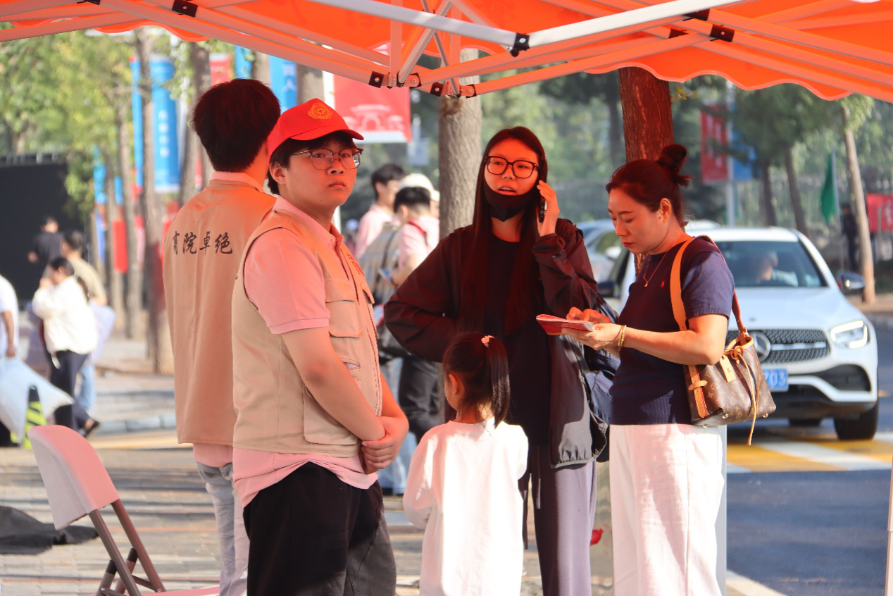9月14日,登封校区迎新工作接力开展。志愿者们坚守在校区总咨询台,细致解答新生关于报到流 程、宿舍分配、校园设施分布等各类问题;同时沿着“校门—报到点—宿舍区”的核心路线主动巡逻引导,及时为迷路新生指明方向,并协助各院系接待点做好人流分流、资料发放等工作。活动中,志愿者们忙碌穿梭的身影成为校园里一道充满活力的亮丽风景线,赢得了新生、家长及学校工作人员的一致认可。
