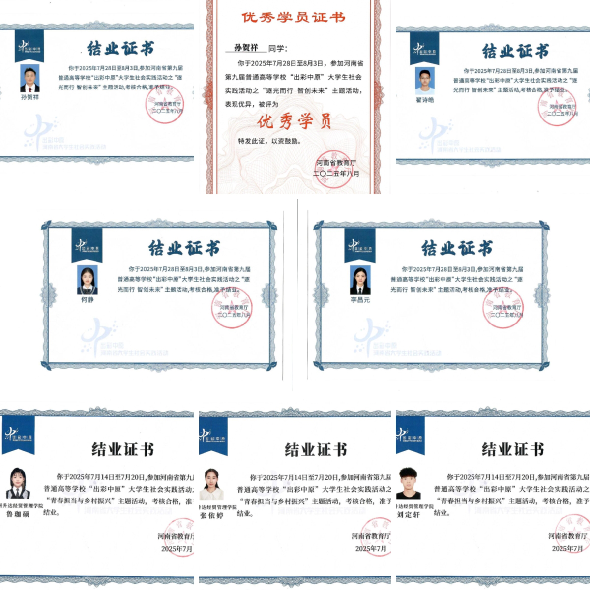 2025年暑期,由河南省教育厅主办河南省第九届普通高等学校“出彩中原”大学生社会实践活动。我校遴选7名学生分两批参与实践活动。
