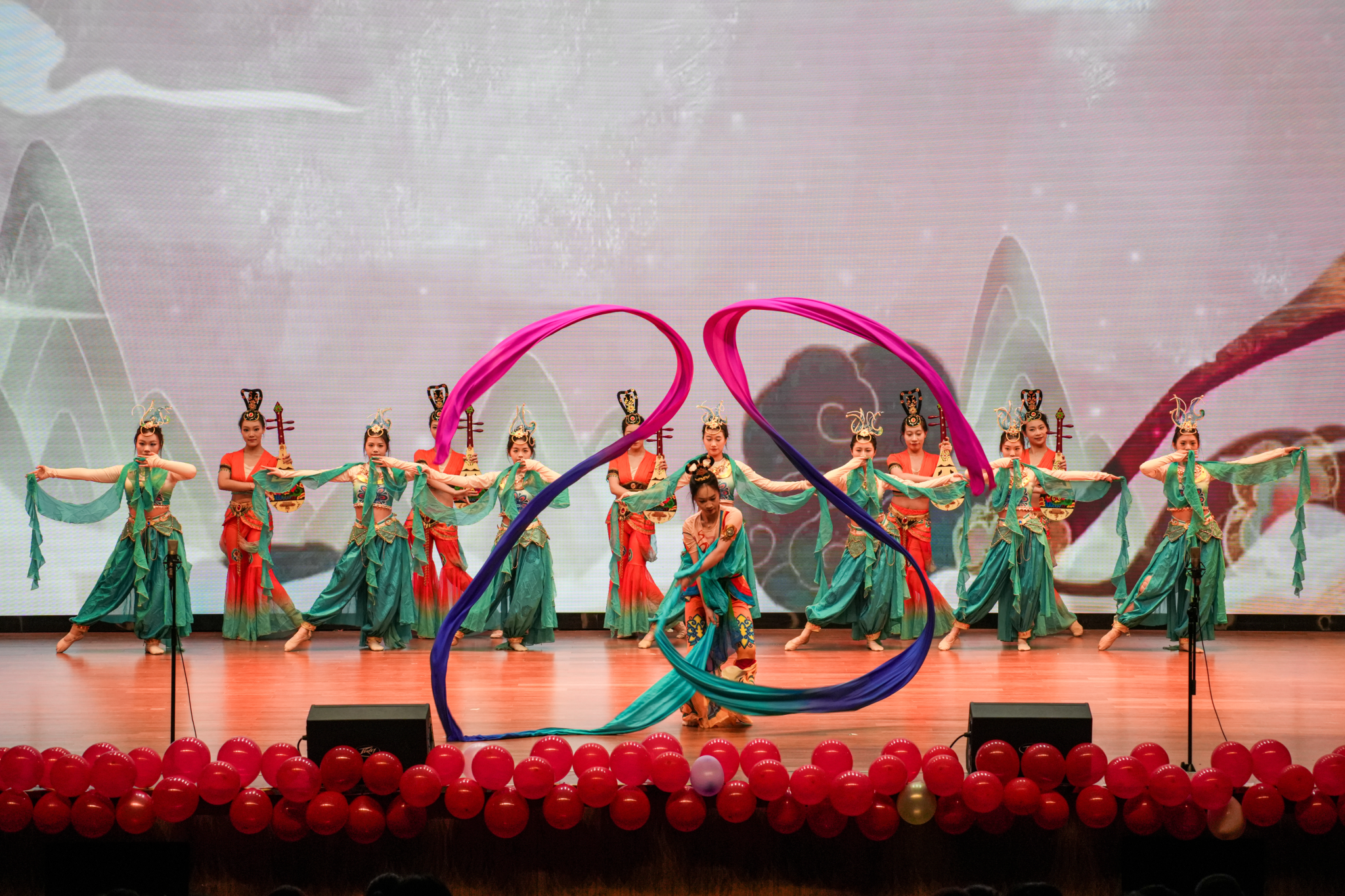 开场舞《灼灼其华》舞者们以曼妙的舞姿与富有张力的肢体语言,展示出新生力量如繁花初绽,美好而充满希望。