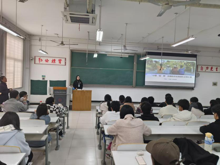 第八届河南省“出彩中原”立项项目(“小镇菇事”传播助农实践团)指导教师丁新湍主要围绕“四力”课堂分享。实践团以“脚力”深入田间地头,丈量乡村脉络;以“眼力”观察农情民生,洞察真实需求;以“脑力”分析思考,为乡村振兴建言献策;最终用“笔力”和镜头记录时代变迁,传播助农强音。她勉励同学们,要始终将新闻人的根深植于祖国沃土,在火热实践中汲取养分。希望同学们能将此次收获内化为前行力量,以此为新起点,怀揣理想与担当,在未来的广阔天地中真正“创梦启航”。