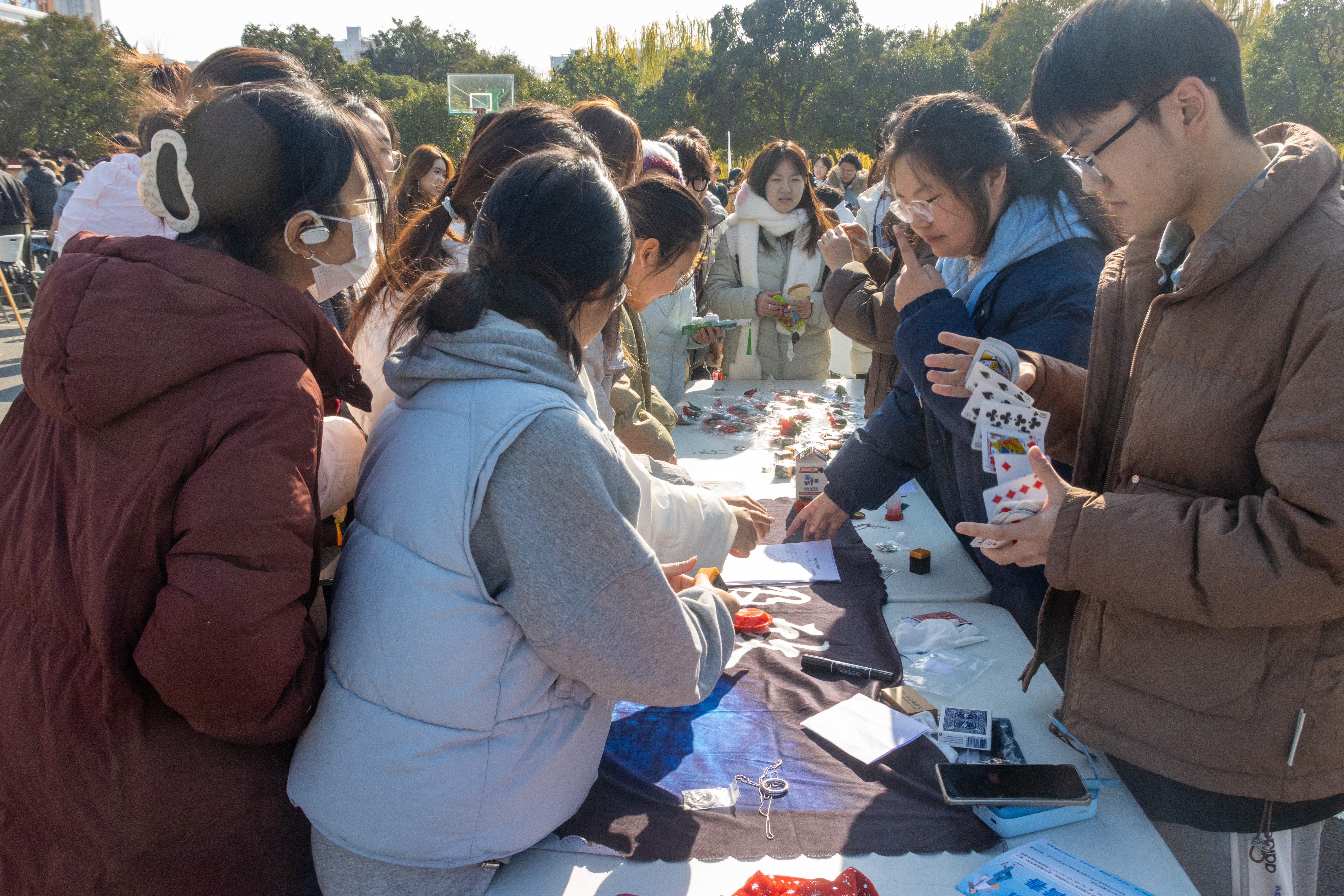 学术科技、文化艺术、体育健身、手工实践等多种类型的学生社团根据社团特色,紧扣主题,精心设计了形式多样、特色鲜明的现场展示与互动环节。活动现场,既有挑战思维的学术趣味答卷,也有展现巧思的手工DIY制作体验,还有充满欢声笑语的趣味体育运动游戏。同学们手持活动集章卡片,穿梭于各个社团摊位之间,积极参与互动,在轻松愉快的氛围中感受不同社团的独特魅力,完成指定任务后即可兑换精美纪念品。