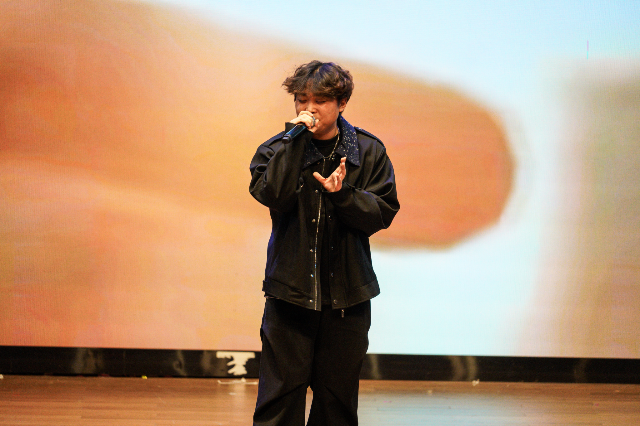 艺术学院吴其隆带来独唱《裹着心的光》,清澈而富有穿透力的歌声中满含坚持与希望的力量,旋律婉转间传递出不馁的信念,直抵人心;管理学院李宇洋演唱的《天后》则以嘹亮高亢的嗓音和自信从容的舞台表现,将歌曲中的深情张力展现得淋漓尽致,赢得台下阵阵掌声。