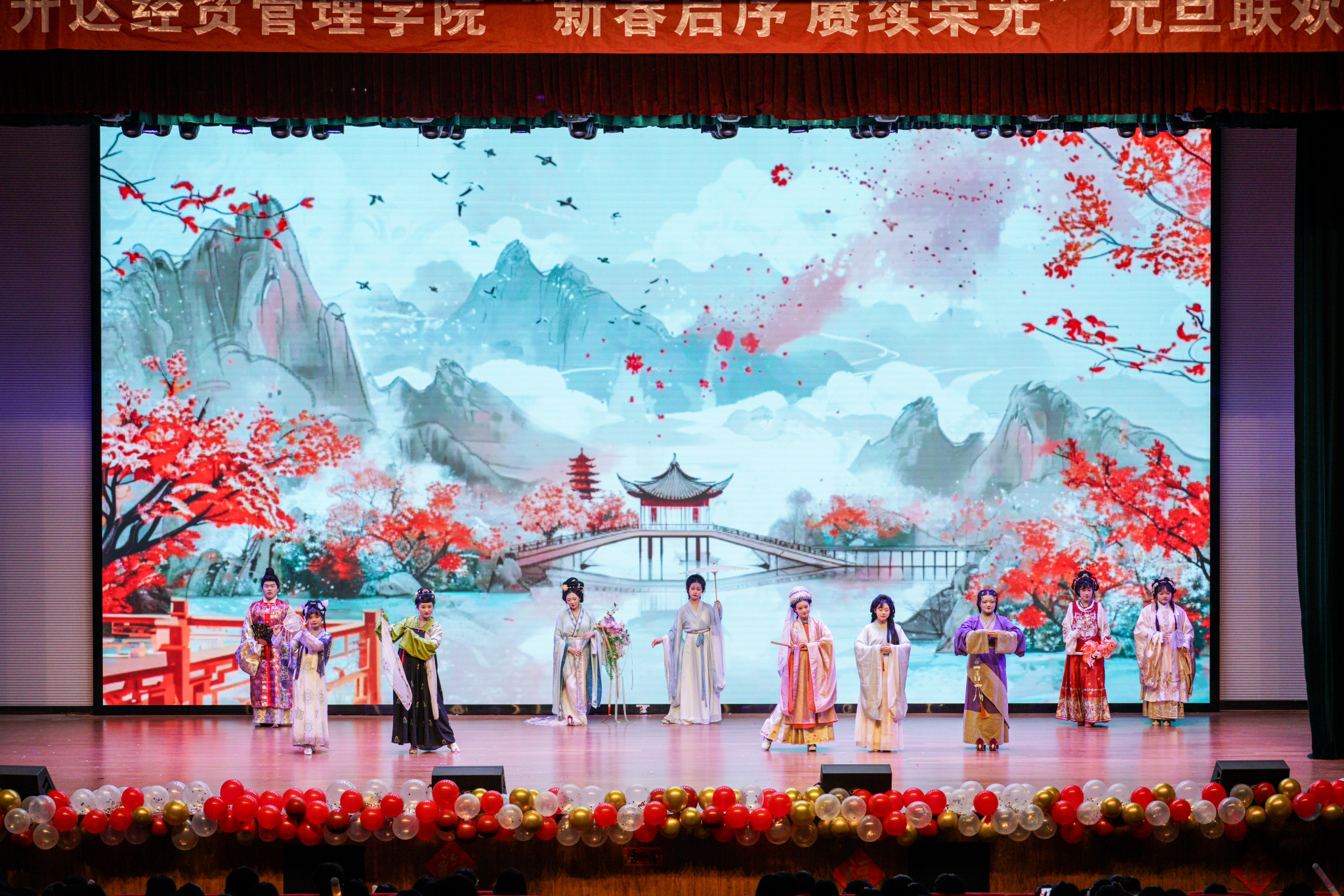 为深入推进社会主义核心价值观和中华优秀传统文化教育,引导团员学生传承弘扬中华传统节日文化,同时鼓励团员学生以饱满状态迎接新年崭新征程,以积极向上心态做好期末复习和考试工作。12月26日下午,我校在思源会馆举办2026年“新春启序,赓续荣光”元旦联欢会,两千余名师生共赴新年之约。