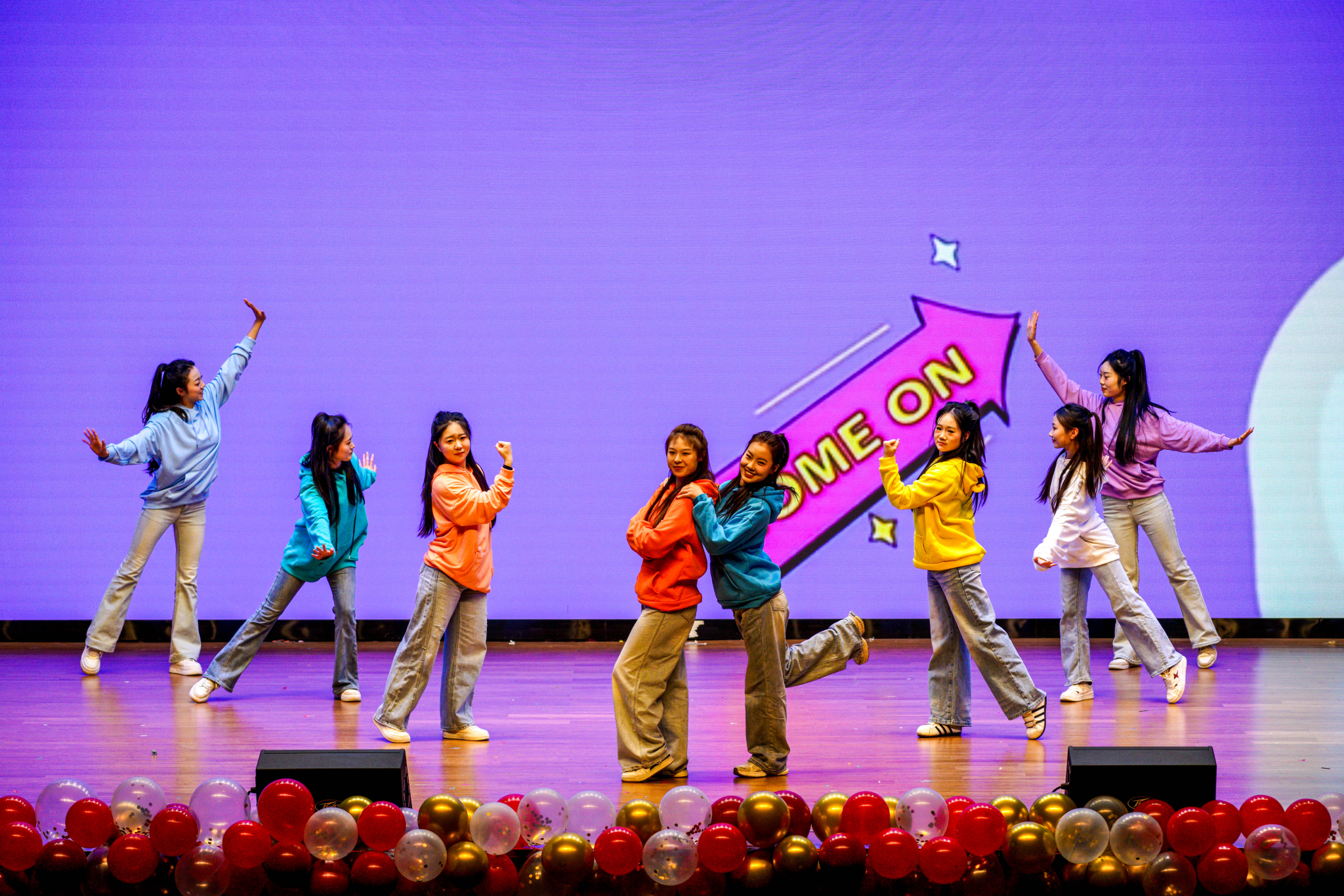 歌舞交替间,现场气氛持续升温。管理学院舞蹈队带来舞蹈《炽焰节拍》,队员们打破冬日的沉静,将青春热血转化为炽热的舞台能量。动作干脆利落,队形变换行云流水,每一个有力的舞姿都彰显着青年学子的蓬勃朝气与昂扬斗志;精舞门带来的《舞所不能》则融合街舞、爵士等多种舞蹈风格,创意十足的编排与极具张力的表演令人眼前一亮,充分展现了青年学子的创新思维与扎实舞蹈功底。